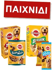 Pedigree Dentastix Οι σκύλοι λατρεύουν να εξερευνούν τον κόσμο με το στόμα τους. Μάθετε περισσότ Πρόγραμμα Υιοθεσίας Pedigree® Κάθε σκύλος αξίζει κορυφαία διατροφή και ένα ζεστό σπίτι. ΜΑΘΕΤΕ ΠΕΡΙΣΣΟΤΕΡΑ Τα προϊόντα μας ΜΑΘΕΤΕ ΠΕΡΙΣΣΟΤΕΡΑ